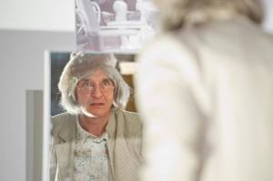 In seinen Reaktionen schwingt jedoch zunehmend ein unterschwelliges Widerstreben mit, die momentane Situation zu akzeptieren. Die Besuche im Heim seiner Mutter sind für ihn eine weit kompliziertere Angelegenheit, als es zuerst scheint. Finden sie doch für den Sohn jede Woche auf dieselbe Weise statt und werden zur wiederkehrenden Belastung, ohne Aussicht auf ein glückliches Ende. Es spricht eine Müdigkeit aus ihm, eine Erschöpfung, die über zu schwappen droht und die die Mutter nie erkennen wird. Momente der Inakzeptanz, das Erkennen darüber, dass sich Menschen, die einen das Leben über begleitet haben, an wirklich wichtige Momente nicht mehr erinnern können. Die Anstrengung, Disziplinierung und Anforderungen werden auf eine sehr lebensnahe und berührende Weise von diesem einen Schauspieler gelebt und geben dem Zuschauer einen tiefen Einblick in zerrissene Gefühlswelten.