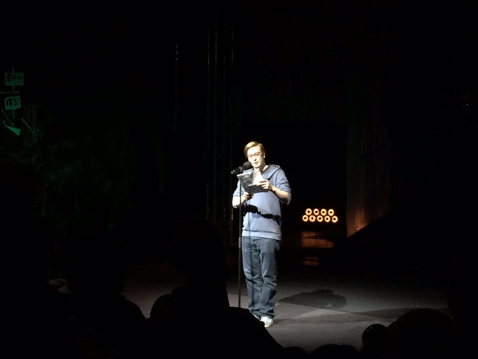 Zuletzt gibt Casjen Ohnesorge seinen Text zum Besten. Mehr noch als dieser beeindruckt Casjens facettenreiche Stimme, der man jegliche Tonlage von unterhaltsamem Plauderton bis hin zu aufbrausendem Emotionsausbruch vollkommen abnimmt. Als Zuschauer schwankt man zwischen der Versuchung zu lachen und disziplinierter Selbstbeherrschung. Casjen simulierte mitunter Stimmungsschwankungen, wodurch sein Temperament unberechenbar. Das Publikum ist angetan, für die Finalrunde reicht es jedoch nicht.