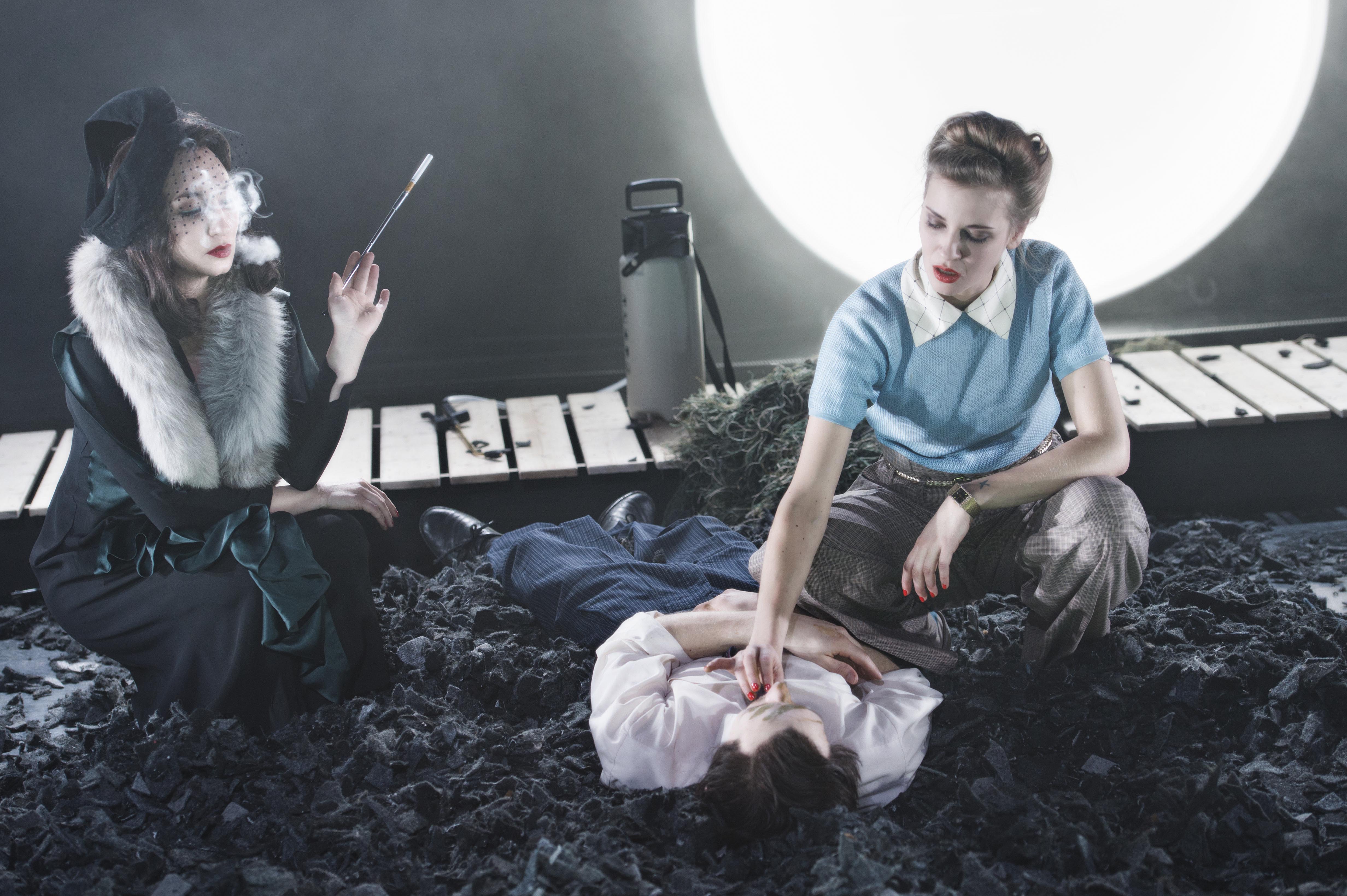 und Whiskey saufend, kritisiert er als Pritchett zwar die bestehenden Verhältnisse, doch sie zu ändern ist er nicht bereit. Er führt die Zuschauer durch die Handlung und durchbricht dabei gerne mal die vierte Wand, wenn er den Zuschauern in die Mechanismen des Film noir einweiht, nicht ohne ein gewisses Augenzwinkern. Lara Waldow spielt die undurchschaubare attraktive Auftraggeberin und findet sichtlich Gefallen daran, mit den Klischees der alten Krimis zu spielen. Daniel Breitfelder schafft den schwierigen Balanceakt zwischen dem exzentrischen Naturisten und dem zugleich tief verängstigten Mann, der Mitglied einer Verschwörung geworden ist, deren Ziele er irgendwann nicht mehr teilen kann, aber selbst nicht die Kraft aufbringt, mit ihr zu brechen. Johanna Falckner verkörpert die intelligente Femme fatale mit Charme, aber auch einem stringenten Willen, alles, was sie haben will, auch zu bekommen. Intellektuell scheint sich tatsächlich nur Pritchett mit ihr messen zu können, wenn dem Zuschauer manchmal schon bei deren gesellschaftlichen Disputen der Kopf raucht. Benjamin Berger schließlich hat, obwohl er erst spät die Bühne betritt, den überraschendsten Part – von dem eben noch hinterwäldlerischen Sargbauer, wandelt er sich zum verkappten Terroristen und damit zur gefährlichsten Figur in diesem undurchsichtigen Spiel. Berger gelingt es auf äußerst unterhaltsame Art und Weise, seine Figur zunächst komisch und dann bedrohlich zu spielen.