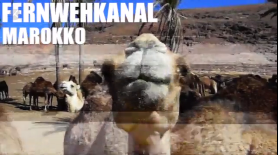 Doch das Märchenhafte wird grob unterbrochen, als zwei Haschisch-Konsumenten (Philipp Basener, Lena Geyer) bemerken, dass ihnen das Gras ausgegangen ist. Während sich daraufhin die klassischen Töne des Orients in moderner Popmusik verlieren, verwandelt sich auch das Foyer immer schneller in einen Basar. Ein Teppich und Palmen werden aufgestellt, Ursula Grossenbacher, verkleidet mit eierschalfarbenden Anzug und Sonnenbrille erzählt im Stil des klassischen Touristenführers von DuMont alles wissenswerte über das Land Marokko: welche Speisen dort besonders zu empfehlen sind, dass die Hauptstadt Marrakesch für seine Partys und das moderne Leben steht und so weiter. Während sie die Informationen runterrattert, kaut ein Kamel auf der Leinwand im Hintergrund in Dauerschleife rhythmisch zum Informationsfluss. Genauso fließend wechselt das Geschehen zu einer Basar-typischen Fleischerszene um eine billige Damenhandtasche.