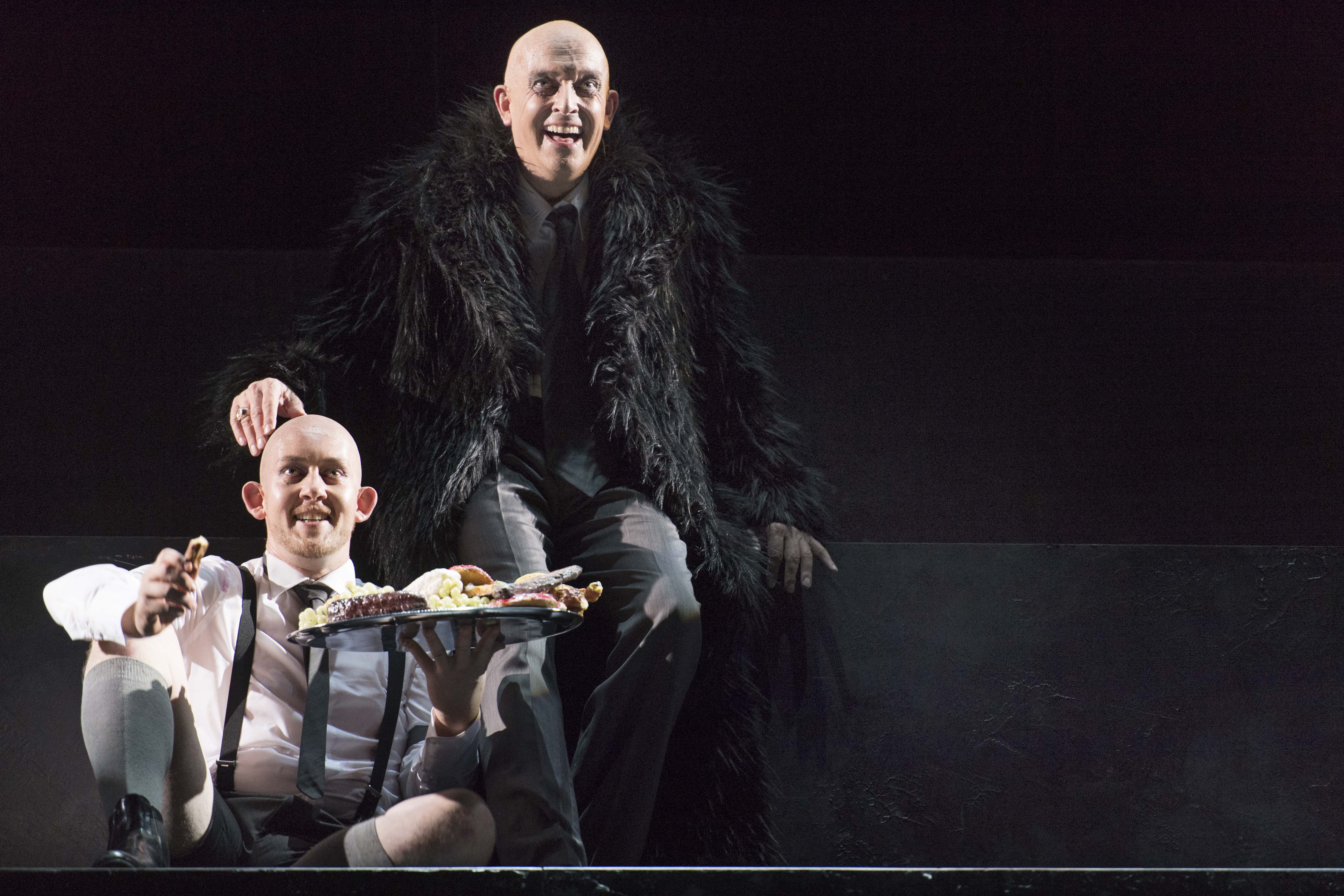 Noch eine Besonderheit fällt in Bezug auf die Kostüme auf.Alle Spieler, bis auf Johanna, haben eine Glatze, wodurch ihre ihre Taten und ihre Unbarmherzigkeit, besonders vor dem Not und Elend der Arbeiterinnen und Arbeiter, noch ein wenig kälter wirken. Denn während die Drahtzieher die Arbeiterinnen und Arbeiter mit ihren Grundbedürfnissen locken und man als Zuschauer nicht zuletzt durch einige Tiermasken vermutet, dass sie somit schon längst selbst zum Tier geworden sind, brüskieren sie sich zudem mit der Aussagen, die Menschen besäßen eine unverkennbare Schlechtheit, da durch den Kampf ums Überleben eine erschreckende, animalische Seite in ihnen geweckt wurde.