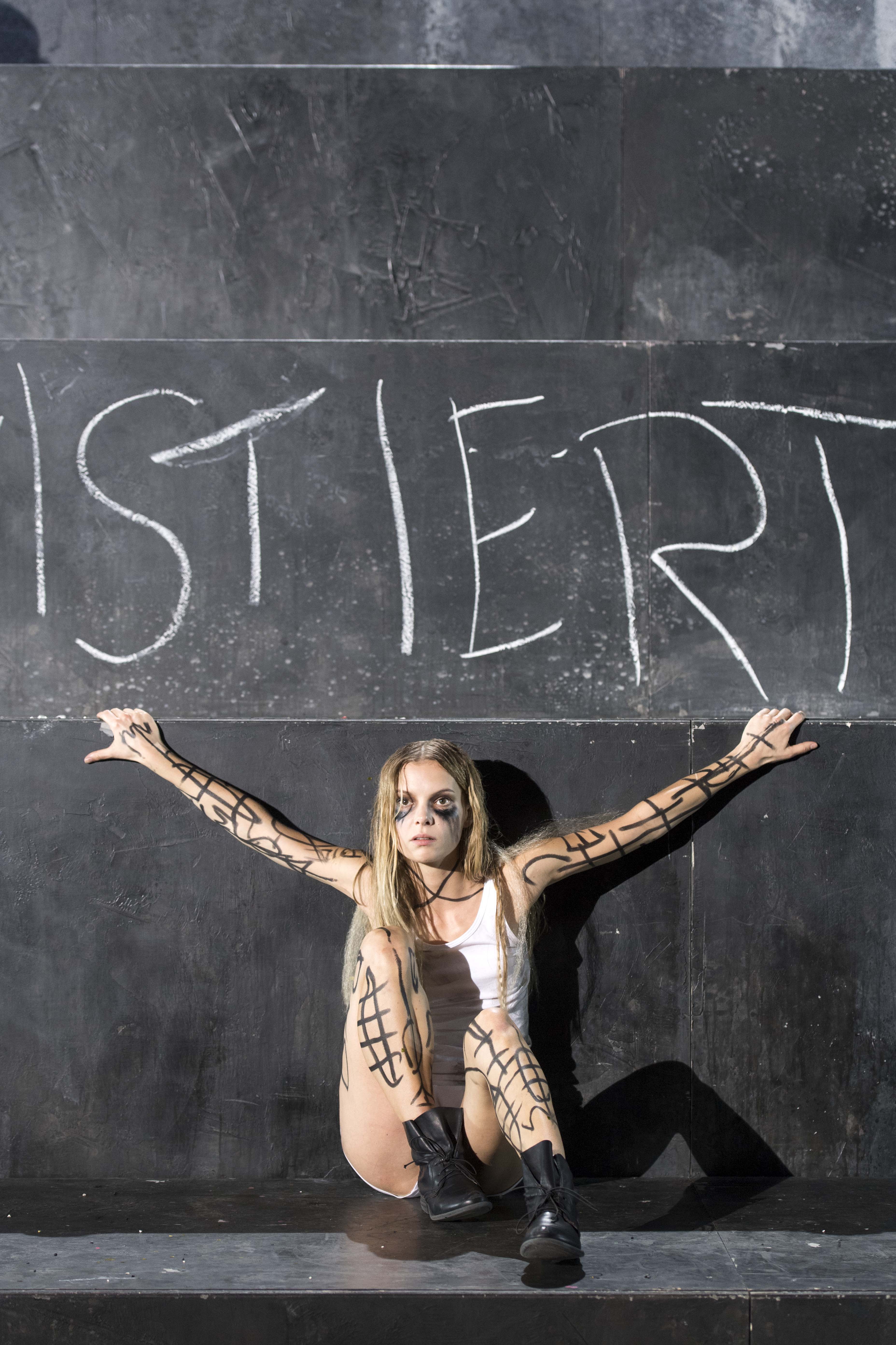 Daneben setzt Linnenbaum, die bereits ROMEO UND JULIA und SPIELTRIEB am Theater Bonn inszenierte, eher auf eine für den Zuschauer fast schon natürlich wirkende Symbolik und meist einfache Requisiten ein, wie z.B. Kreide oder Schmutz, und sorgt somit auch für einige ruhige Momente im Stück. So wird Johanna zu Beginn des Abends mit einem Lamm auf dem Schoß und singend gezeigt, wodurch ihre reine Natur unterstrichen wird. Zusätzliche Elemente wie Zitate oder geheime Stimmen von Fabrikarbeitern, die von ihren Arbeitsbedingungen erzählen, verleihen dem Abend außerdem einen modernen, politischen Mehrwert mit dem Wunsch auf Gehör.