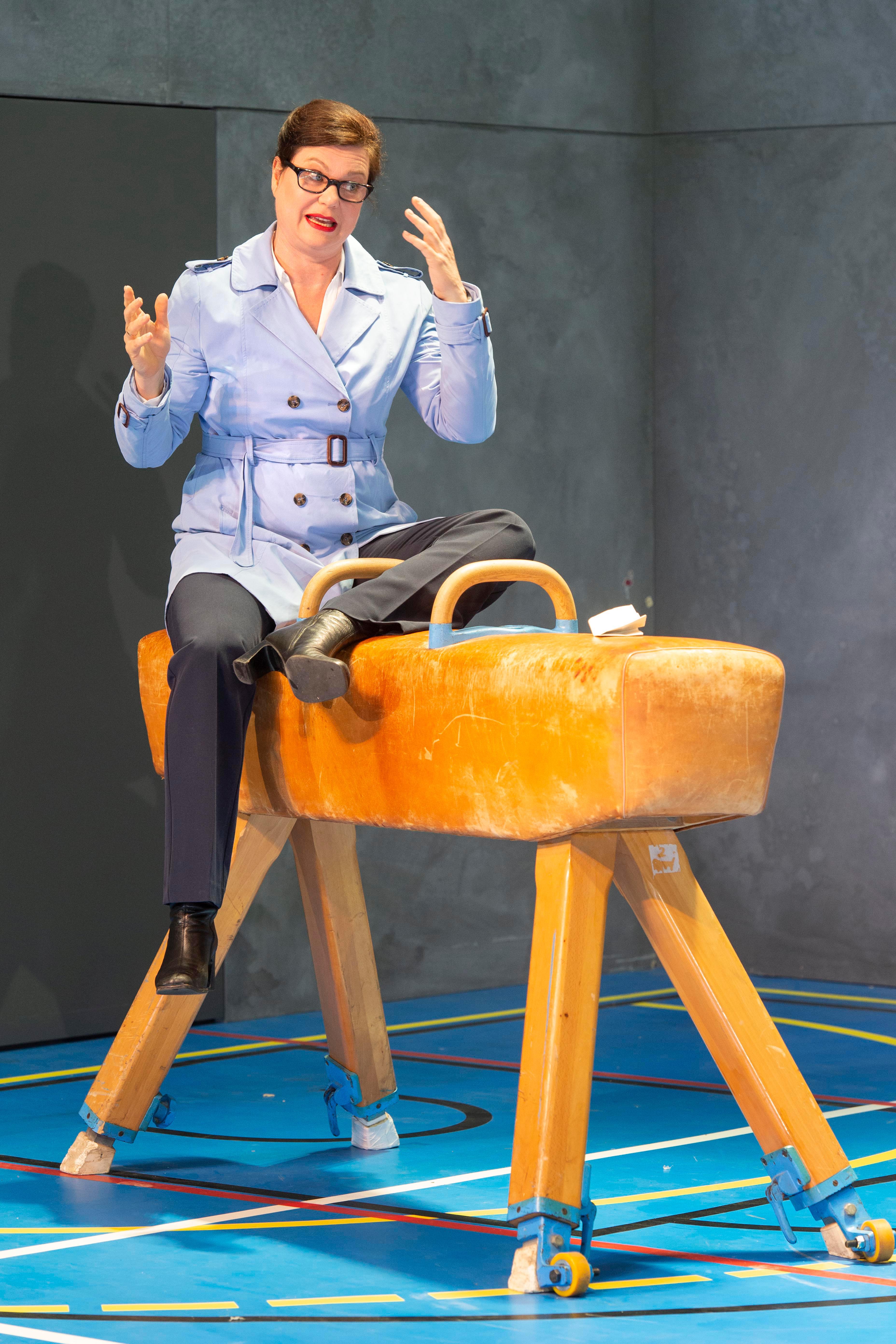 In dem Stück geht es um die Elternschaft einer vierten Klasse, die, sehr besorgt über die anstehenden Halbjahreszeugnisse, versucht die Klassenlehrerin loszuwerden. Das Ganze soll in einem Elterngespräch in der Turnhalle stattfinden. Die Turnhalle ist auf der Bühne exakt so nachgestellt, wie sie wahrscheinlich jeder von uns noch aus seiner Schulzeit kennt, samt der klassischen Wände mit Stoffbezug.