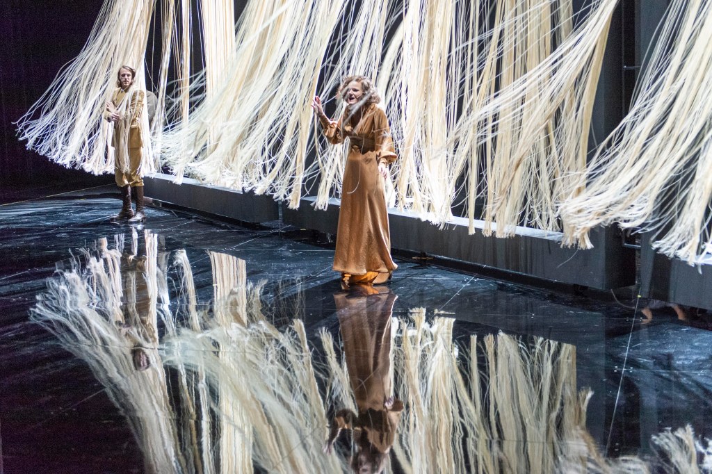 Im Gegensatz zu dem sehr dicken Buch von Tolstoi kommt einem die knapp zweistündige Inszenierung erfrischend kurzweilig vor. Die Umsetzung von Luise Voigt hat sich vor allem auf die Emotionen der verschiedenen Charaktere konzentriert. Stimmungsvoll unterstützt wurde das gesamte Stück vor allem durch den Einsatz von teilweise aufgezeichneten, teilweise liveaufgenommenen Videos, die auf drei riesigen Projektionsflächen bestehend aus Fadenvorhängen gezeigt wurden (Bühne und Kostüme: Maria Strauch). Damit konnten ganz viele Ebenen auch neben der gerade „real“ passierenden bespielt werden. Zum Ausdruck kamen Gedanken, Träume, Vorstellungen oder Vorahnungen. Die berühmte Stimme im Kopf wurde sehr plastisch durch die Stimme aus dem Off dargestellt. Dieses ganze Setup hat es dem Zuschauer erlaubt, den Figuren extrem nah zu sein, die Emotionen waren teilweise geradezu greifbar. Gefühlt war man Inside Anna Karenina und nicht bloß einfacher Beobachter. Die Unterstützung durch die Kameras hat auch dazu geführt, dass das großartige Spiel mit Mimik und Ausdruck der SchauspielerInnen besonders zur Geltung kam.
