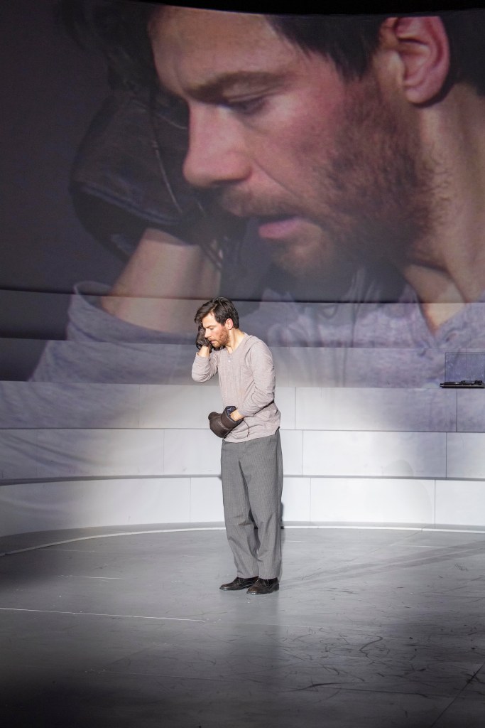 Wie durch den Einsatz eines Chores so finden sich auch Anklänge an die Antike in der Gestaltung des Bühnenbildes (Sebastian Hannak). Durch einen mehrstufigen, schlichten, halbrunden Aufbau wird der Zuschauer an die historischen Theater der Griechen und Römer erinnert. Die Bühne verwandelt sich später vor den Augen der Zuschauer zum Boxring, zur Tanzfläche und zum Wohnraum. In diesen Räumen bewegen sich die Figuren mit einem Minimum an Requisiten: Ein Stuhl, Boxhandschuhe und ein Plattenspieler, welcher zentral zum Einleiten der eingebauten Tanzeinlagen dient.Gerade die verschiedenen Tanzeinlagen holen das Publikum aus der bedrückenden Stimmung des Dramas. Die Tanzszenen werden durch eine Mischung aus der Zeit stammenden Musikstücke und modernen Moonwalk aufgepeppt.