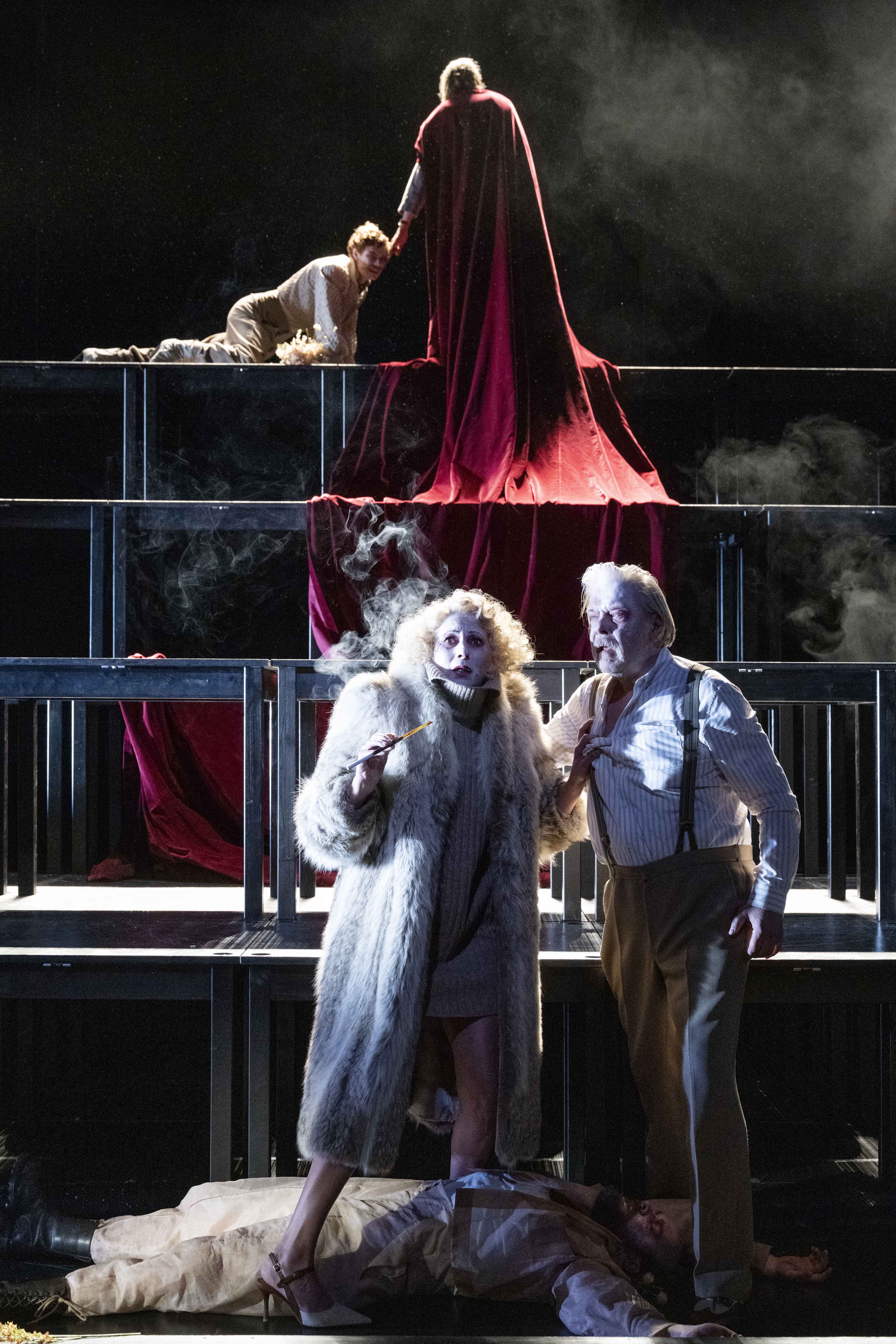 Dullfeet sowie Dogsborough werden von Andreas Leopold gespielt. Beides schon etwas betagtere Männer, so dass sich die Regie hier einen Spaß erlaubt, indem sich Leopold vor dem Publikum von Dogsborough in Dullfeet verwandelt, indem er seinen Backenbart abnimmt und selbstironisch auf die Verwandlung aufmerksam macht. Diese kleinen Späße kommen der Desillusionierung, die Brecht selbst auch immer wieder für seine Stücke anstrebte, sicher sehr entgegen. Allerdings reizt sie Linnenbaum mitunter auch sehr aus. In der Gerichtsszene, wo es um die Verurteilung des bereits genannten unschuldigen Fishs geht, lässt sie die Gerichtsverhandlung wie ein Marionettenspiel Uis erscheinen, denn er hat bereits die Justiz in seiner Hand. Als Regisseur steht er am Rand des Gerichtssaals und gibt genau Anweisungen, wie Richter und Ankläger zu sprechen und sich zu bewegen haben, gibt ihnen sogar die Worte in den Mund. Ursula Grossenbacher als Richterin hat besonders mit dem Marionettenspiel zu kämpfen – schließlich steht sie für den Rechtsstaat, kann aber keine gerechten Entscheidungen treffen. Die Idee eines Spiels im Spiel ist gut, vielleicht sogar sehr gut, aber sie strengt auch an, sodass man als Zuschauer fast die Lust verliert. Das ist etwas bedauerlich, da gerade die Gerichtsszene einer der Schlüsselmomente ist, die den Verlust von Freiheit und Gerechtigkeit darstellt. Ui ist ab diesem Punkt nicht mehr angreifbar, da es niemanden mehr gibt, der ihn anklagen könnte.