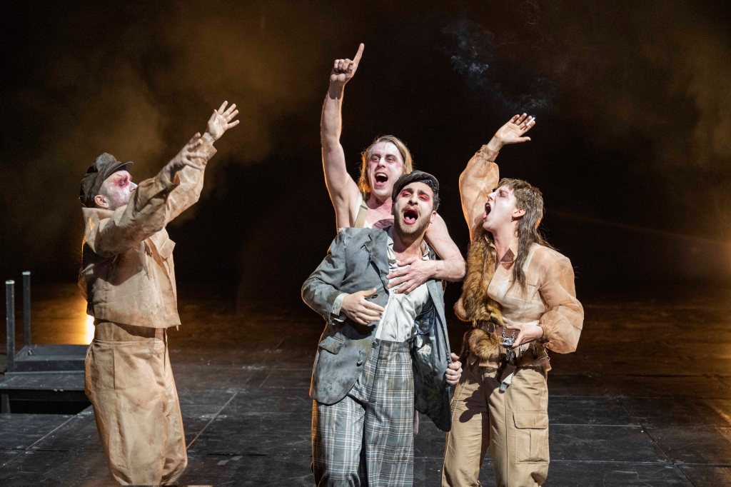 Linnenbaum legt bei ihrer Inszenierung viel Wert auf die komischen Dialoge und Szenen im Text. Das ist keine überzogene Interpretation, denn die Absurdität bringt zugleich das Absurde – nämlich dass Hitlers Aufstieg zum Reichskanzler hätte verhindert werden können- zutage. Man fragt sich ständig: Wie konnte das bloß passieren? Imposante Bilder, Musik und zum Teil groteske Szenen steigern den Abend zu einem Erlebnis, wo vielleicht selbst Netflix nicht mithalten kann. Doch ist das für Brecht nicht fast zu viel Unterhaltung? Läuft die Botschaft Gefahr dem Rausch zum Opfer zu fallen? So hat man am Ende den Eindruck, dass der sehr deutliche Verweis auf die AfD die Relevanz für die Gegenwart unterstreichen soll – waren die Bezüge davor etwa nicht deutlich genug? Und ist es überhaupt immer noch die AfD vor der sich die Gesellschaft fürchten muss, oder ist es nicht eine in der Gesellschaft viel verstecktere Gefahr des Rechtsrucks, der sich eben nicht (nur) in einer Parteizugehörigkeit zeigt? Der Verweis büßt durch seine nicht zuvor konsequente Einbettung in das Gesamtgeschehen an Strahlkraft ein.