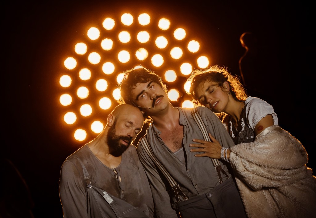 Stattdessen wird viel gesungen, begleitet von einer exzellenten dreiköpfigen Live-Band (Philip Breidenbach, Joonas Lorenz, Samuel Reissen). Die Kombination aus einer großen aus mehreren Strahlern bestehenden Sonne, die unermüdlich auf- und untergeht und der melancholisch-verzweifelten oder auch wütenden im Country-Style arrangierten Songs sind an vielen Stellen gut eingesetzt. Allerdings erging es zumindest der Autorin so, dass irgendwann der Eindruck entstand, man singe fast so viel wie in einem Musical, in dem jede Emotion von einem Lied begleitet wird. Das ist nicht per se schlecht, störte aber mitunter das durchaus bemerkenswerte Spiel der Schauspieler*innen. Daniel Stock machte eine besonders gute Figur, indem er den fragilen und fast hilflosen Lennie so unbedarft darstellt, dass man ihm selbst den Totschlag an Curleys Frau nicht richtig übelnehmen kann. Umso transparenter schildert sich damit auch Georges innere Zerrissenheit, als er die Entscheidung treffen muss, ob er seinen Freund töten soll, bevor die aufgebrachten Arbeiter es tun. Zurecht wird an den alten Hund erinnert, aber muss dafür auch noch einmal ein Song eingespielt werden?