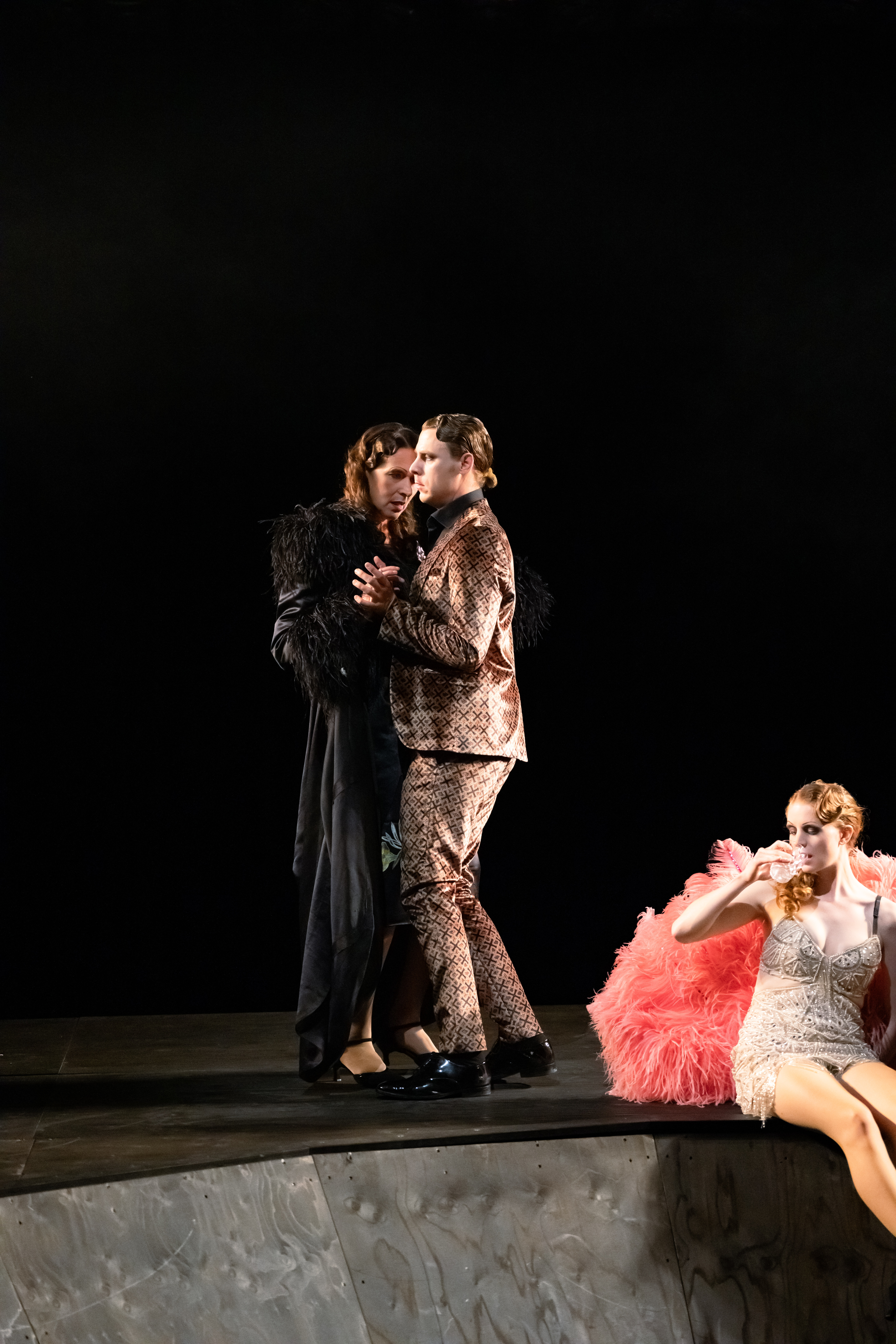 Wer sich gerne spannende Krimis ansieht oder die chronologische Entwicklung von Figuren im Theaterstück genießt, der ist in dieser Aufführung falsch. Stattdessen hat sich Regisseur Martin Lamberenz für eine Aneinanderreihung von sich zum Teil wiederholenden Szenen und Charakteren entschieden, die mit ganz eigenen Zielen und auch anscheinend eigenen Realitäten agieren und eher gezwungenermaßen miteinander interagieren. Hier kommen Fans des Filmregisseurs Wes Anderson auf ihre Kosten, dessen Filme auch mehr Wert auf die Darstellung als auf die Handlung an sich legen.
