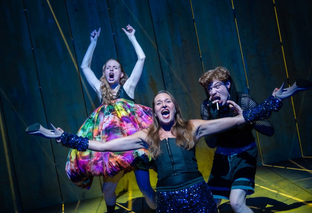 Gut drauf war auch Sophie Basse, die die selbstbewusste und systemkritische Clubbesitzerin Frau Flott und Hitzkopfs Vater Percy in Doppelrolle spielt. Basse gelingt es, nicht nur für den nötigen Spaß, der bei Shakespeares Dramen nicht fehlen sollte, zu sorgen, sondern auch, dass mancher Lacher dem Publikum im Hals stecken bleibt. Den Wechsel zwischen Komik und Tragik bringt sie besonders gut als Frau Flott zur Geltung.