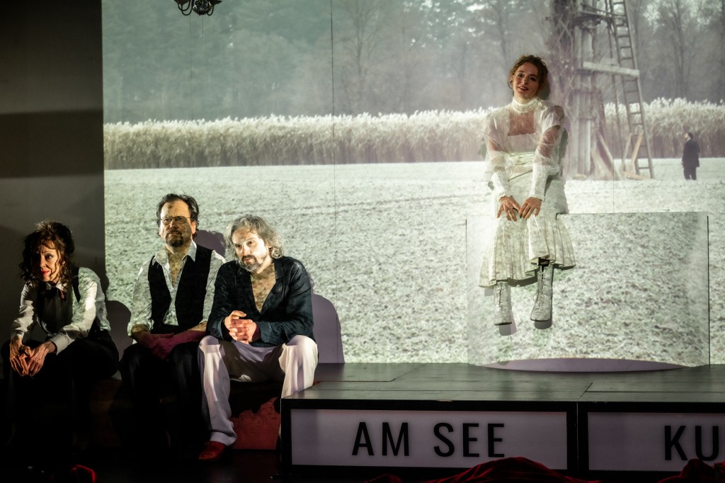 Warum heißt das Stück „Die Möwe“? Das liegt an einem Satz von Nina, die ihre Leidenschaft für die Bühne mit der Sehnsucht einer Möwe nach dem Meer vergleicht. Eine arg romantisierte Sicht, wie auch Kostja ihr zeigen möchte, als er ihr eine erlegte Möwe zu Füßen legt. Eine etwas makabere Art von Humor, die dem Publikum aber immer wieder an diesem Abend begegnet.